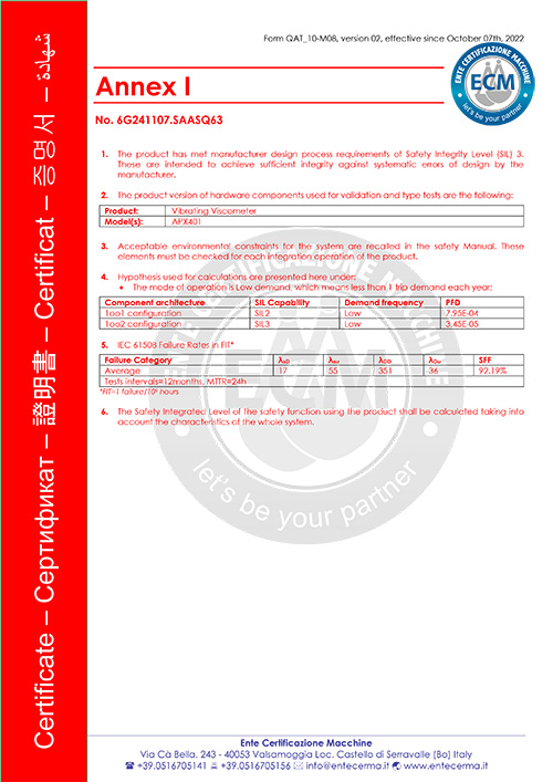 選用產品APX401-RD在線振動式粘度計